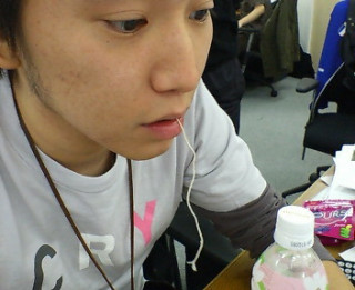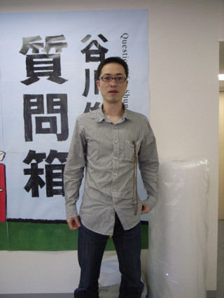社内で、唯一くらいに、 服装が社会人らしいのである。 シャツがパンツに「イン」である。 これが、いつ「アウト」になるのか? 私どもは、 ひそかに見守っている。