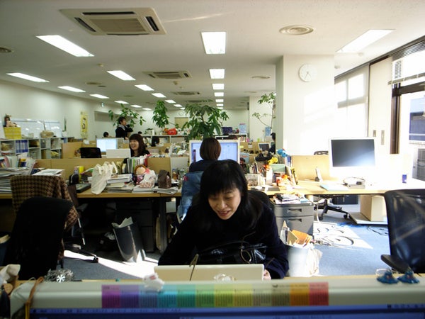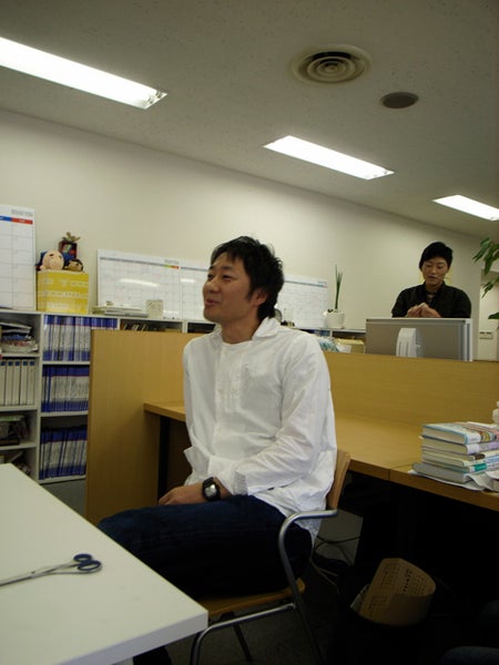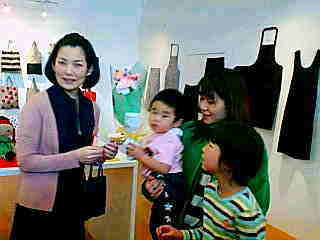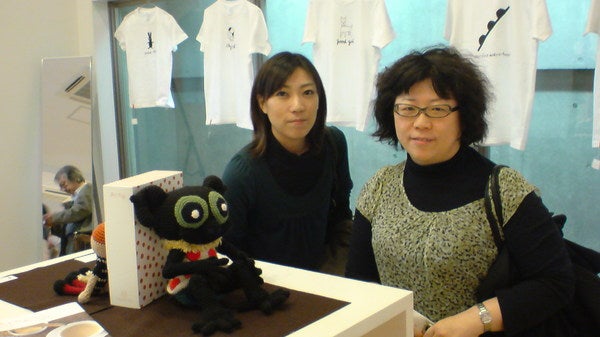 タカモリ・トモコ先生をほぼ日に紹介してくださった、日本ヴォーグ社のみねひろこさんです。タカモリ先生の、何番目かのお弟子さんです。右側のメガネのおねえさんです。メガネザルくんが「とってもとっても、すっごく!」気に入ったそうです。左は、同僚のおおくぼさんです。