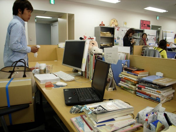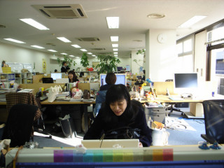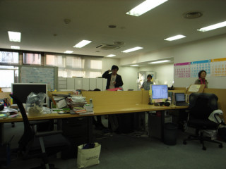 現在席替えの引っ越しは佳境。私は新しい席に移りました。お隣はとさん。ナナメ前は さんとさん。えーと、目の前は‥‥。マーコさん!いやいや、本日は事務所に原稿を書きにこられているのでした。