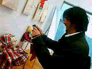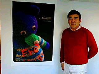 ふう、大にぎわいのIO Galleryから先ほど戻ってまいりました。ちょっと遅くなりましたが本日の様子をお届けしますね!こちら、カメラマンの大江さん。だいぶ気候は暖かくなりましたが、まだ短パン王子ではありませんでした。1枚目のポスターは、大江さんの撮影されたものですよ。ちなみに、大江さんは、あみぐるみの中でもくまさんがお好きだそうです。やっぱり、ちょっとご本人に似てるような気がします。