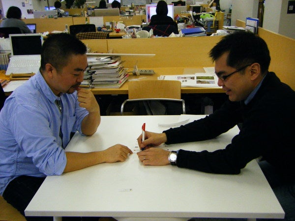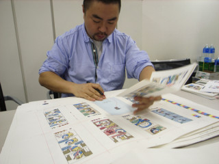 お手伝いいただいている男性は 版元のソフトバンククリエイティブの 斉藤さんです。 |