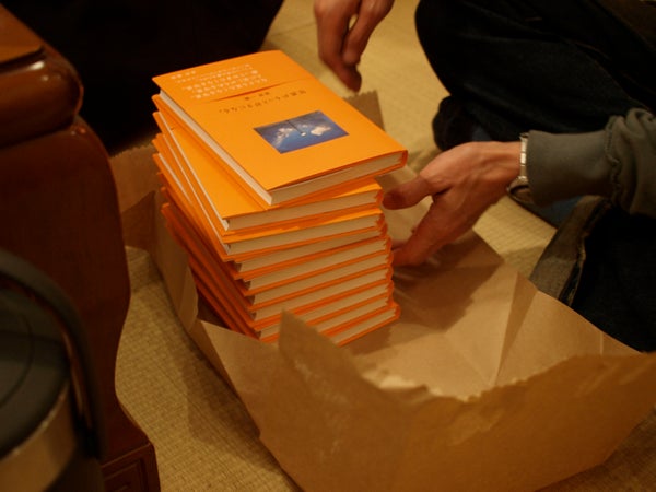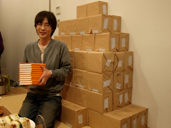 おつかれさまでした、菅原一剛さん。どうも、ありがとうございました。この1000冊は、きちんと預かり、発売にむけての準備に入ります。「ほぼ日ストア」では最初のこの1000冊をサイン付きで、さらに2000冊をご用意して4/15(火曜日)より発売いたします。どうぞ、よろしくお願いいたします。一般書店での発売は4月下旬の予定です。版元のソフトバンククリエイティブの斉藤さんも、梱包、おつかれさまでした!ありがとうございました〜!