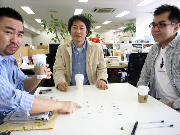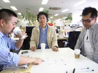 今日はお昼ご飯の後に月曜日までのメニューをシャッフル。せっかくだからさんもぜひどうぞ。毎日、シャッフル後に、なんとなく話をして、気になってることを解決したりもするのです。純粋な雑談のこともありますが。しかし、このうららかな昼下がり、食後、右手にはコーヒーを持ち。本日はシャッフル後ではなく、シャッフル中に華々しく雑談をおっぱじめた4人であります。それにしても、東京・青山は良い天気ですな。