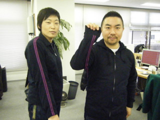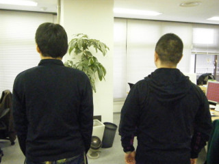 ほぼ同時に出社してきた、さんと 。ほぼ同時にコートを脱いだらなんとほぼおそろいのお洋服!ラインがはいっている場所が違うみたい。後ろ姿がけっこう違うみたい。おんなじところで買われたんですかー?「表参道の路面店で。」「高島屋で。」弊社ではしばしば起こる現象ですー。