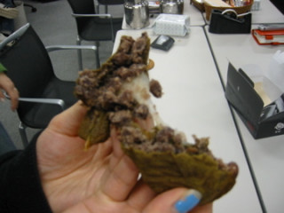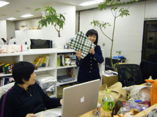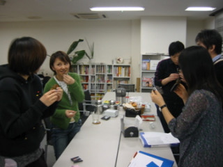 差し入れでいただいたたい焼きをみんなのテーブルに置いてみたら、あっというまに手がのびてきました。あんこの箸休めに白玉まで入っていておいしい〜。さて、甘いものを食べて、もうひとがんばりするぞー。