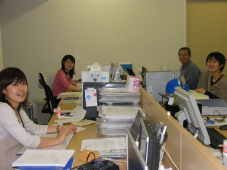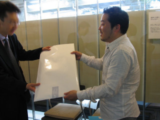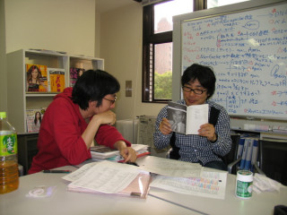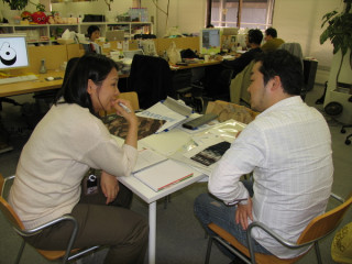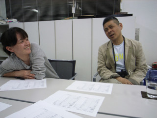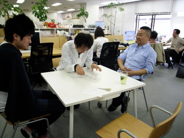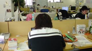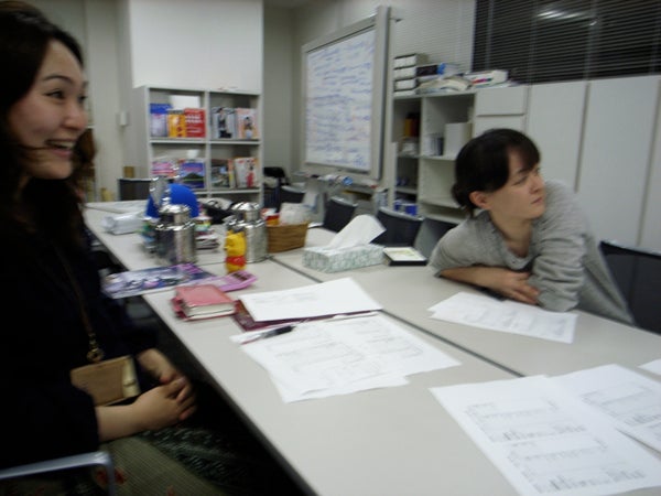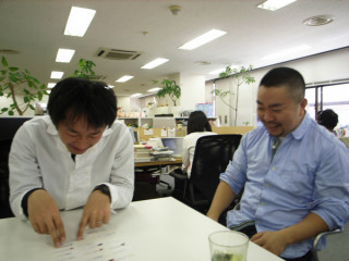 書籍チームのさんと、さんと、(こちらの写真は永田さんが撮ったもの)社長とちょっと長話をしていました。これから出る予定の書籍について、です。そのあと、社長がいまコツコツと作業している仕事の話に及び、ひとしきり、その作業の方法なんぞについて教えてもらいました。