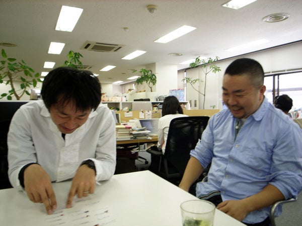 がわっせと移動しているあいだ、めがねの2人がひっそりと、しかし熱く吉本プロジェクトを話し合い、新乗組員のみなさんはおじさまとにこやかにお仕事されていました。そんな夕暮れどきの「ほぼ日」です。じわじわっとなにかが動いてる気配です。