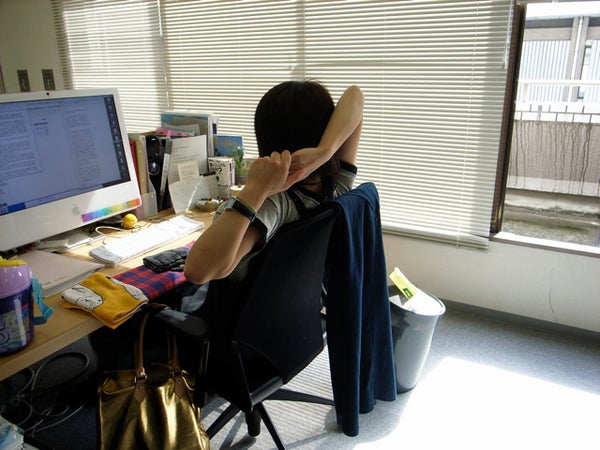 弊社社屋は、午後になると、燦々と太陽光線を浴びることができます。春は紫外線がいちばん強いといわれたりしてますが、 さん、ゆでだこ?「ゆでだこ。 吉本さんの原稿を まとめてるけど、 でも、ゆでだこ。」もう、クーラーの出動なのか?それは、非常に地球にきびしいぞ。もうちょっと汗だくでいこう!