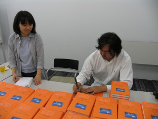 サイン中の菅原さんに みなさんのメール 読みあげてさしあげましたら たいへんうれしそうでした。 みなさま、応援メール お送りいただきまして ありがとうございます!