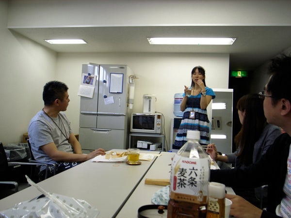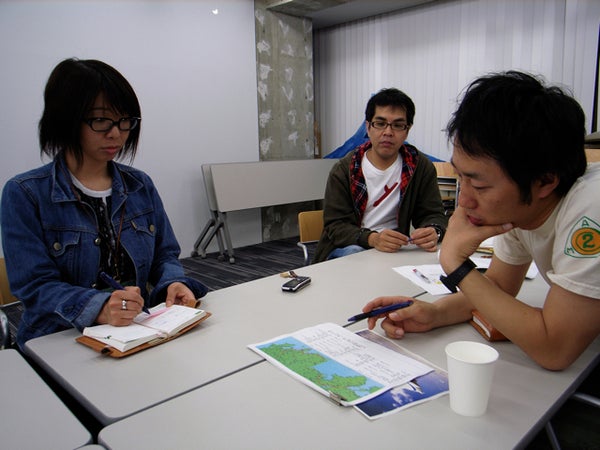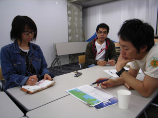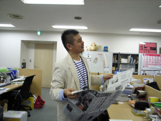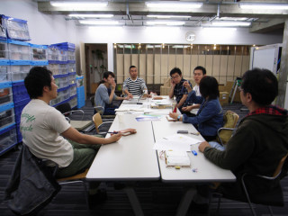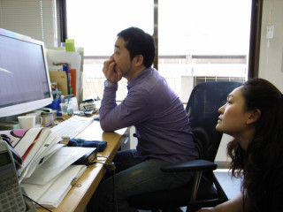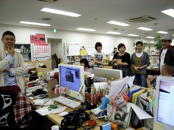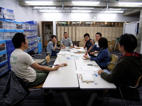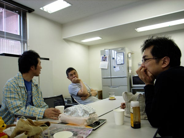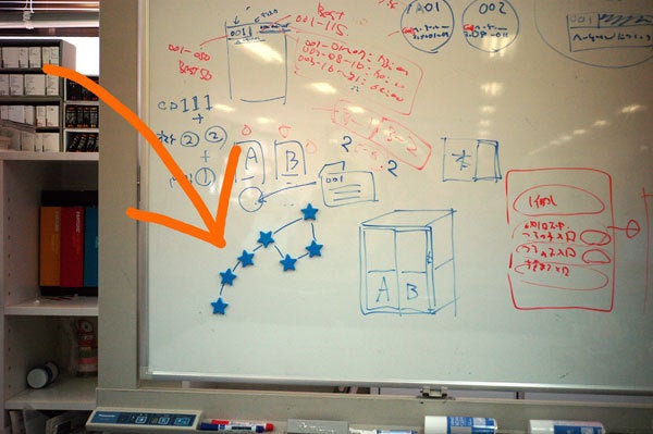 フロアの奥のほうにある ホワイトボードには、 プロジェクトのラフアイデアがさまざま、 各人によって書き込まれています。 いまは吉本隆明さんの 講演集についてのアイデアが たくさん書かれているようす。