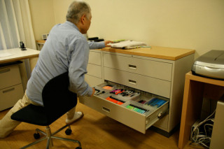 伸坊さん、ものすごい整頓好きらしく、 机の上は何も置いてなくて、 いつもきれいだし、 引き出しの中まで、 ものすごいきれいでした。 これは、見習わなくては‥‥