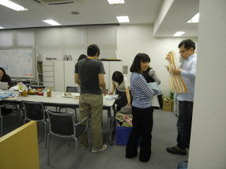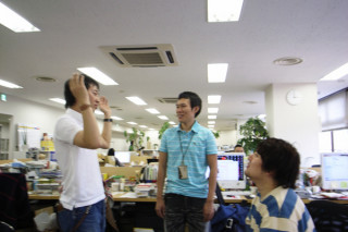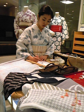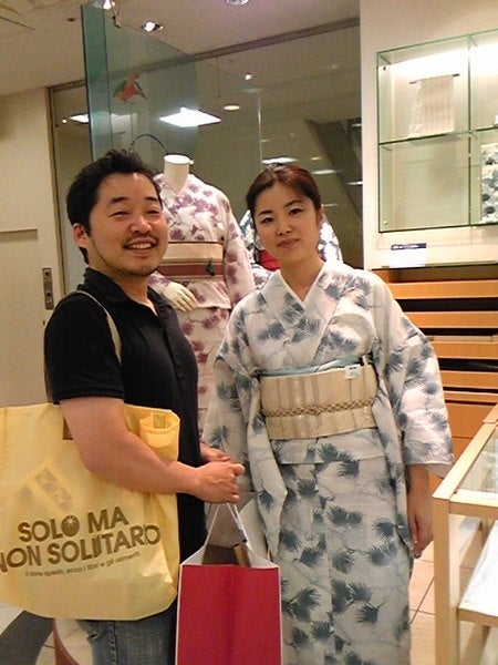 これは、昨日の夜、 タオルの撮影用の小道具を借りに、 新宿伊勢丹の呉服売場「WAGU」さんに うかがったときの1枚で、 素敵な着物や小物を貸してくれたのは、 プロデューサーの久山さんでした。 (実は、昔からの友達なんです。)
