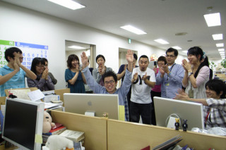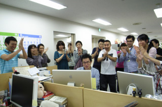 ちゃんを かこみ、 拍手喝采の夜である。 |