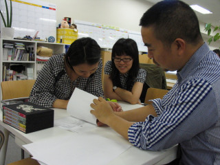 (写真上) 会議はしばしば煮詰まり、 チームのみんなの 背中が小さく見えたことも。