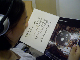夏休みあけの「ほぼ日」にあるものが届きました。みんなで見ているとホワイトボードカレンダーの製作で忙しいも、製作の手をとめてそぅ〜っと、やってきました。何が届いたのかというと、『吉本隆明 五十度の講演』のMP3セットの完成品が届いたのです。これまでサンプルは見ていたのですが、完成品となってセットされたものは初のお目見えです。CDセットに比べるとコンパクトなのですが、かっこいいです。みんなの見学終了を見計らってべっかむ3もじっくりと手にとっていました。