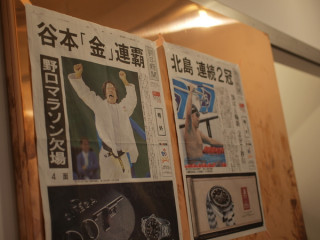 山口工務店のすみやかなボランティア仕事によりカフェ五輪の看板ができました。なかでは、工務店主とカフェ店主がそろって馬術を観戦中でした。あ、号外掲示板もできてる!