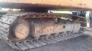 ユンボのキャタピラのあたりはこのようになっています。ふだんあまり見ることのない部分ですし、せっかくなのでアップいたします。なお、現場はユンボが景気よく土をかき出し、ダンプがひっきりなしに出入りしているため、つねに地面が揺れています。そのため、ぐっさんは、軽く船酔い的な感じになっています。