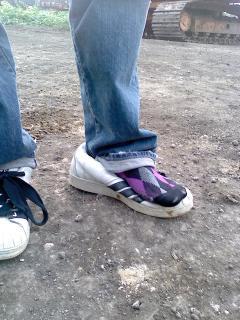 ひとつ前の投稿を打ってるおっくん。気付いたら、片足の靴を脱いでいました。どうしたの?「足がつっちゃって…」と言いながら、まじめに投稿を打ち続けるおっくんでした。それにしたって、変な格好ですよ。