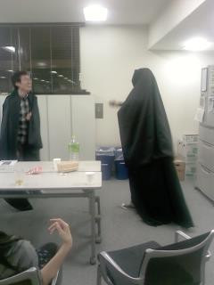 と が 黒い布を持ち出してきて、 2人にかぶせました。