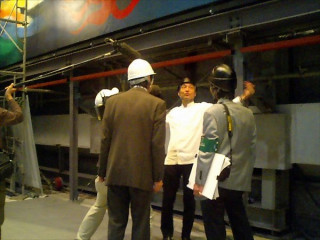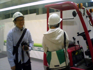 感無量な私を放置してこのふたりは現場のフォークリフトに注目。