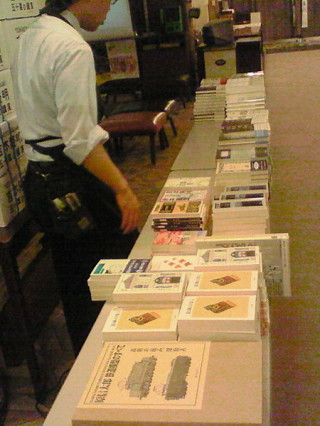 紀伊國屋ホールのロビーでは、本やDVD(「吉本隆明・五十度の講演」)の販売も行います。DVDは試聴もできるんですよ。(担当は深澤こうちゃん。)オトヤも聴いていました。坊主がボウズに。坊主がボウズに、でございます。