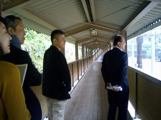 会場の中学校の校舎は木造なんですって。グランドに沿うように長い渡り廊下があります。そこをゆっくり歩いて移動します。