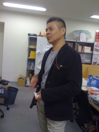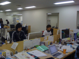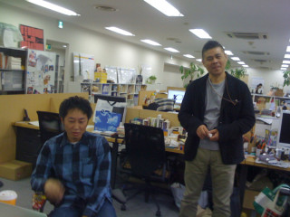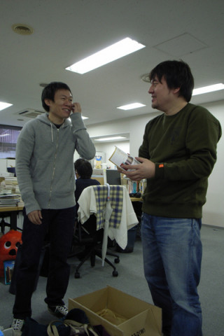 とリーダーが、背後で楽しそうに話しています。この二人は、よくiPhon情報を交換しているので、聞いとくとお得なことが多いのでふりむくわけですが、ちゃんと仕事の話をしていることもあるのです。えー、明日から、弊社社長の糸井重里は、全国4ヶ所のロフトツアーを敢行するのであります。その時に、くばられるチラシの話でした。ところで、このチラシには、4ヶ所にハリウリーダーが登場します。もしも手に入れたら探してみてくださいませ。