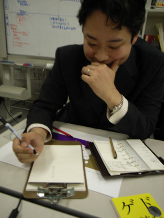 先ほどのシェフの報告どおり、 女子部で店長の着替えを 遊ばせてもらったあと、 その接客術を見るべく、 実演してもらいました。