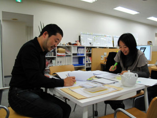 と みっちゃんが 「ほぼ日手帳2009 SPRING」の 再校もどし作業をやっていました。