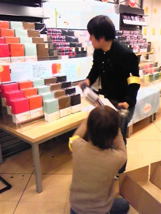 が 「だいじょうぶか!」 と駆けつけます。 (隣の席なのに‥‥) トリイは、日曜日に販売が開始される ほぼ日手帳2009springの ページを制作していたようです。