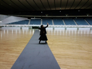 コルテオのショーが終わって、控室に向かう途中、我々は不思議な空間をつっきりました。これは、体育館では?しかもあの、巨大な‥‥というわけで、中&高バレー部の私は、記念にサーブの素振りです。ほぼ日バレー部ではコーチのよ、どうでしょう、このフォームは。