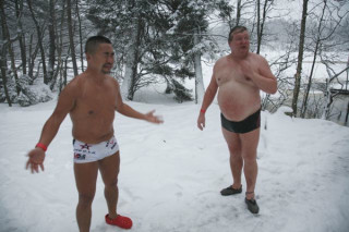 で、やりました。 あっついサウナから つべたい湖に飛び込むと、 体の表面に、電気の幕が張るというか、 「びりびりびり」みたいな感じで、 そのあと5分くらい、 氷点下にいてもべつに平気になります。 なんだかたのしくなってきて、 あはははは、とか笑いながら、 またあっついサウナに入ります。 するとまた電気みたいに 「びりびりびり」となって、 そのうち「あぢぢぢぢ」となり、 また湖へ。 びりびりびり。あはははは。 妙におかしい。 テンションあがるー。 それで5往復です。 いやはや、 そんな取材の幕開けでございました。