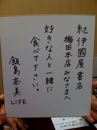 お腹もいっぱいになったところで、店内へ移動します。紀伊國屋さんは、『LIFE』のポスターが多いです。見つけてしまい、思わず…サインしちゃいました。飯島さん。(もちろん、許可をいただいています)本店のどこかに貼ってある一枚のポスターです。行ったときには、探してみてくださいね。