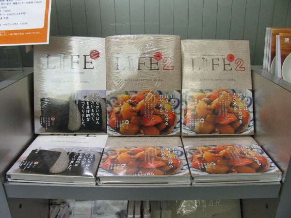 この本棚、 『LIFE』シリーズはもちろん、 おいしいごはんがたのしめる本にくわえ、 見ていてほわわんとした気分になれる本など 「食」だけにとどまらない おもしろい構成になっています。 (たとえば、ごはんに関する本のとなりに 石川直樹さんの写真集!とかね。 ジャンルは本当にさまざま。 ついつい、手に取ってみたくなる たのしいラインナップです)