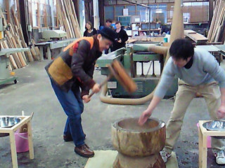 去年の研修旅行に来られなかった久村さんを最後に、もちつきが終了しましたー!これから、工場見学をさせていただくのであります!