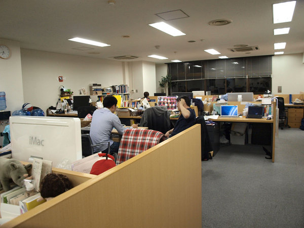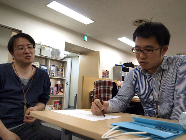 フロア内のまんなかに 設置してあるテーブルにて、 近くに座る と 雑談のような打ち合わせをしていたら、