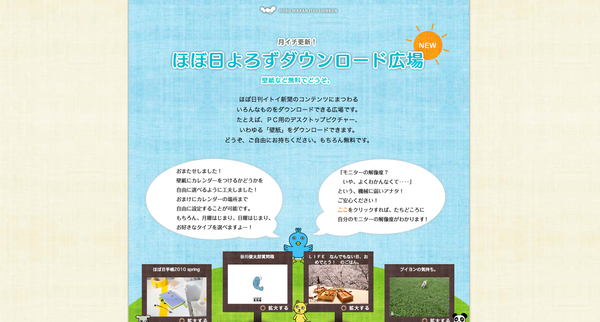 今日から、あたらしい壁紙が ダウンロードできるようになりました。 すずきさんは、さっそく最新のものに デスクトップをさしかえています。