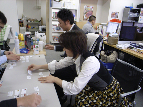 でその が このくらいの時間になると 「目、つかれてない?」と 未体験者のところに来るわけです。 きょうはとなりの席の に 1枚、あげてました。 「かいらく」には一家言ある人ですし なにせ「21世紀健康増進革命連合」だっけ、 弊社の保険委員長でもある男ですから、 こういうのは逃せないわけです。