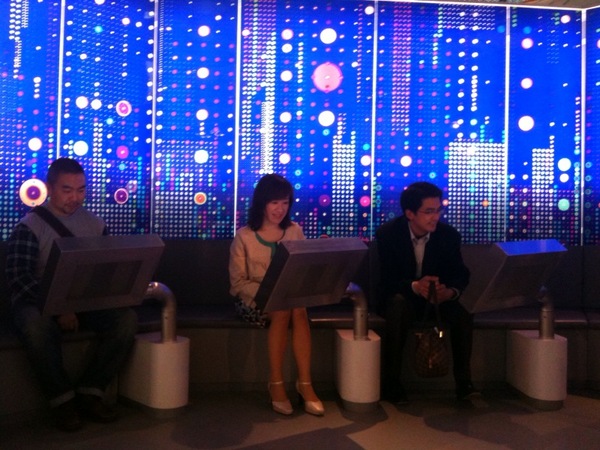 意見発信コーナーです。それを、エンドクサというそうです。この席に座って、画面にでる医療に関するアンケートにこたえていくと、自分の意見が、発信できるということです。実際にこの意見は、現場に届くそうですよ。さ、発信発信。