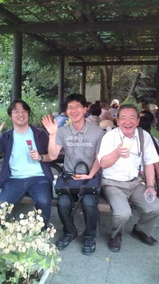 なぜかチームに指名された我々三人ですが、猛暑の中、何とか閉園前の小石川植物園に到着しました。目的のショクダイオオコンニャクの側で休憩中の三人娘を発見!