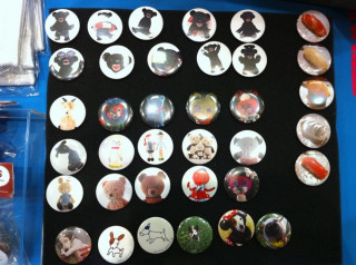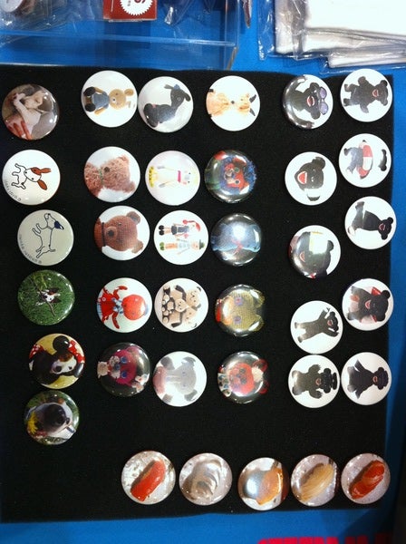 ブイヨン缶バッヂは、 大橋歩さんと荒井良二さんのイラストに加えて、 小さい頃のブイヨンと今のブイヨンと さらには、おめかし(?)ブイヨンなど 6種類がセットになっています。