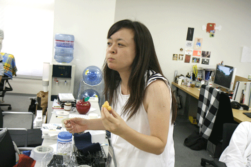 そして展示品にまぎれていますが、 タカモリ先生が 今回の京都企画のために作ってくださった あみぐるみと「ひよこキーホルダー」。 タカモリ先生の作品を直接見れて、 購入できる機会は 多くありませんので ご来店の際はぜひチェックを! (3体のあみぐるみが隠れないように、と おかしなポーズをとっている にんげんのことは 気にしないでください)