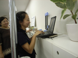 東側には2島あって、その1島は カスタマーサポートチームが居ます。 はじめて東側にきたら、 朝が早いということがわかりました。 西側ではほぼ一番乗りである私も 東側ではビリケツめです。