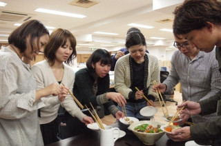 筑前煮が出来ました!「野菜を切って、 ていねいに時間をかけて煮るだけだから こりゃ楽だ!」とのことです。手間がかかりそうに思えて、そんなことないんですね。いいにおいだ、さあみんなのもとへ!きゃホー!ヒューーー!おおよろこびです。