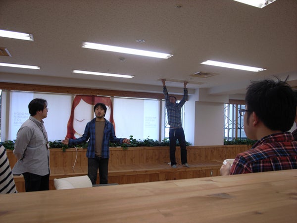 照明設置に難航していた 山口工務店。 天井の素材と電球を下げることの 相性が悪かったので、 ここは、ぐっさん、 さっぱりと諦めて、次の策へ。