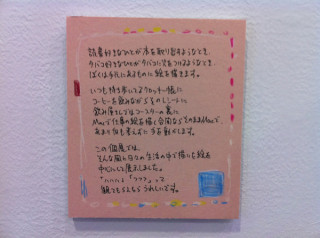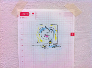 きょうから、たかしまてつをさんの個展が 新宿で、はじまりました! いままで、いろんなタイプの展覧会を ひらいてきたたかしまさんですが、 ひとりきりでおこなう、 ドローイングの個展は 今回がはじめて、とのこと。 カンバスに描かれたものから、 梱包資材、封筒の裏側、 「ほぼ日手帳」のページ、包装紙、 などなど、みのまわりのいろんなものに 描かれた、ほんとうにたくさんの絵が 展示されています。 (販売も、しています。) 自宅の「ふすま」に描かれた 巨大な作品も! (大家さんがおおらかなかたで、 描くことをゆるして くださったんですって。)
