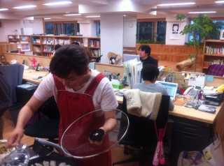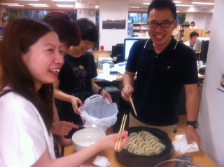 このあと乗組員たちが順次 餃子づくりをするようす、 ゆるゆるとここで中継していきまーす。