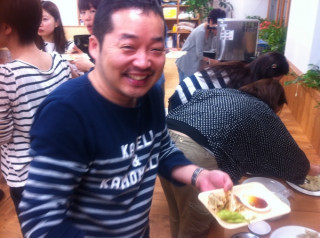 このシェフの前にあるボードです。 ところで、シェフの正座姿は カワイイ。 んでもって、永田さんの靴下も カワイイ。