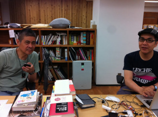 今回作っている本はDVDつきなのですが その綴じ込み方については、 これまで右往左往しておりました。 しかし、力を結集し、とうとう 「これだ!」という仕様に たどりつきました。 現在、デザイナーの清水メガネさんが 印刷会社の佐藤メガネさんに 仕様変更の願い出をしているところです。 でも、気になるのが、 佐藤メガネさんのダンマリ具合。 (口に手を当てたまま凝固して動かない)