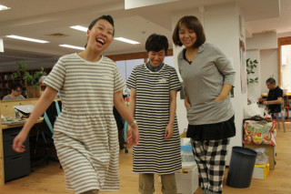 がワンピースを。 大橋歩さんも 「手持ちの服と組み合わせてね」 とおっしゃっていたけれど、 なるほど、 デニムやチノパンと合わせても いいわけですねー。
